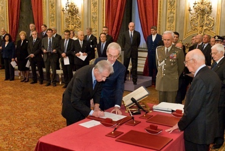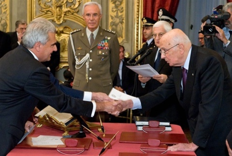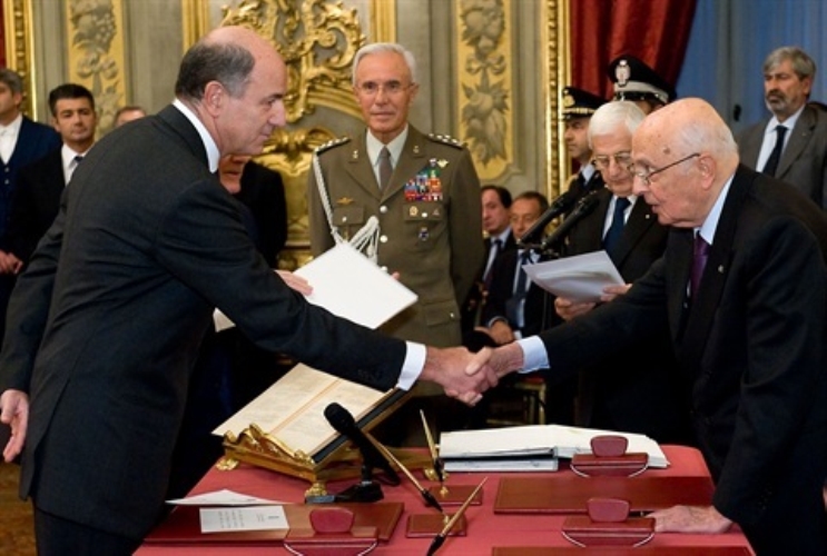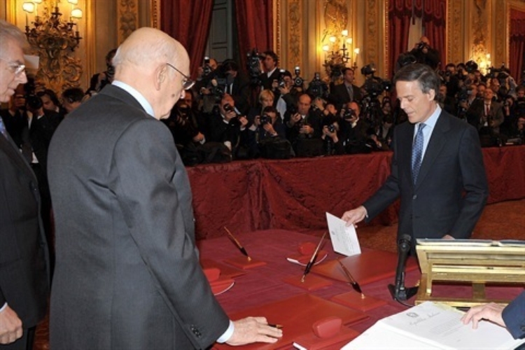 ll Presidente Giorgio Napolitano con Enzo Moavero Milanesi, Ministro degli Affari Europei nel corso del Giuramento del nuovo Governo Monti