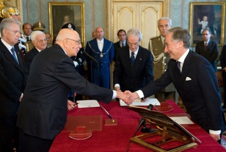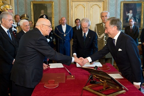 Il Presidente Giorgio Napolitano con il Ministro senza portafoglio Filippo Patroni Griffi, al termine della cerimonia di giuramento