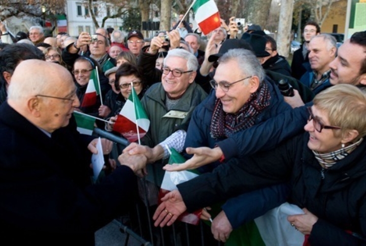 Il Presidente Giorgio Napolitano subito dopo aver deposto una corona d'alloro al monumento dei Martiri di Belfiore