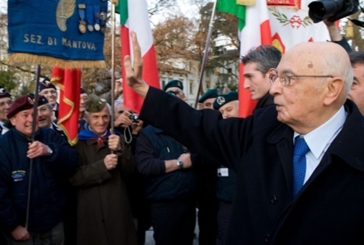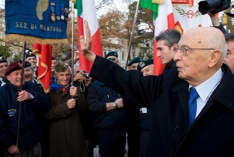 Il Presidente Giorgio Napolitano subito dopo aver deposto una corona d'alloro al monumento dei Martiri di Belfiore