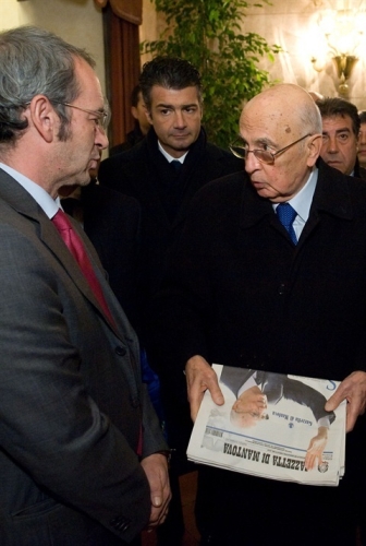 Il Presidente Giorgio Napolitano con il Direttore del quotidiano "La Gazzetta di Mantova"