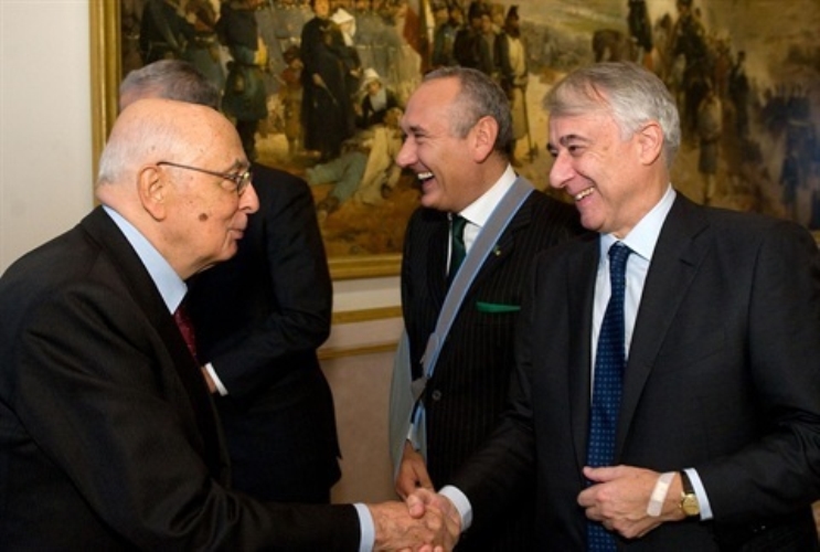 Il Presidente Giorgio Napolitano con il Sindaco di Milano Giuliano Pisapia, in occasione della visita alle Gallerie d'Italia dei Palazzi Anguissola e Brentani sull'arte italiana dell'800