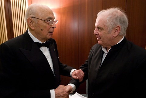 Il Presidente Giorgio Napolitano con il Maestro Daniel Barenboim, al termine del I atto del "Don Giovanni"