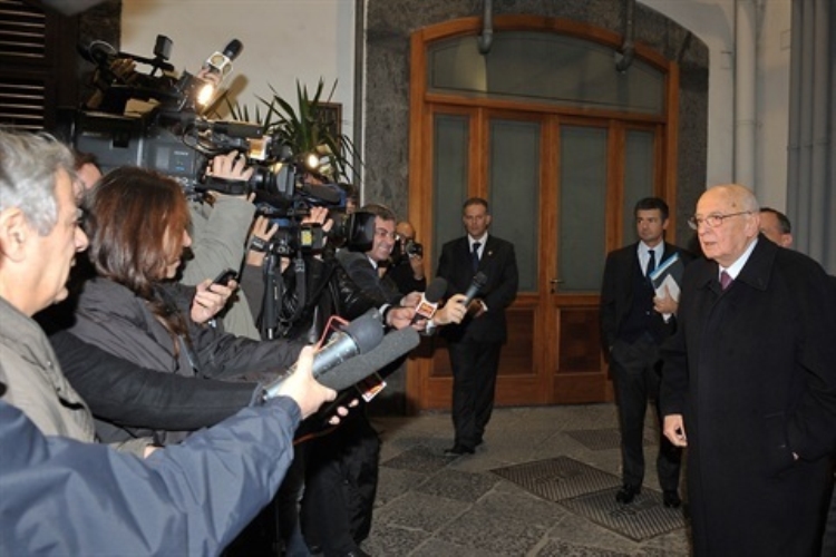 Il Presidente della Repubblica Giorgio Napolitano incontra i giornalisti al termine della sua visita a Napoli
