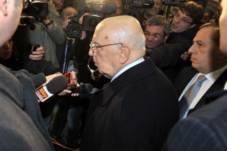 Il Presidente Giorgio Napolitano incontra i giornalisti al termine della sua visita a Napoli