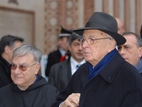 Il Presidente Napolitano al suo arrivo alla Basilica Superiore di San Francesco ad Assisi
