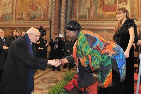 Il Presidente Giorgio Napolitano saluta al termine del Concerto di Natale i cantanti dei Cori