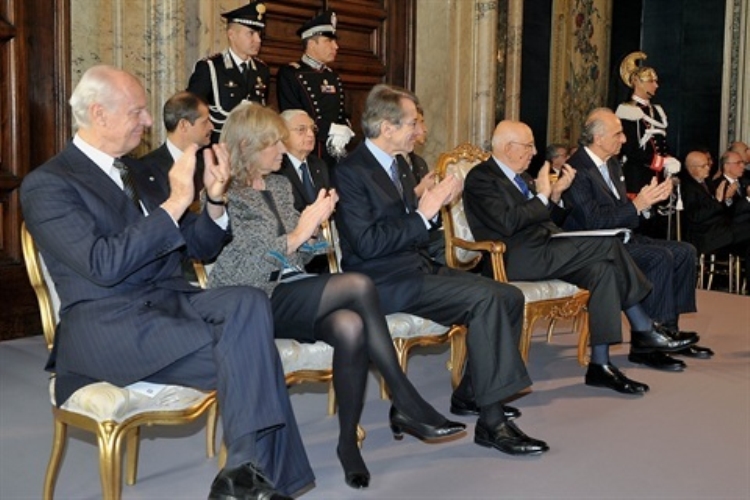 Il Presidente Giorgio Napolitano plaude al termine dell'intervento del Vice Decano del Corpo Diplomatico Ambasciatore del Sovrano Militare Ordine di Malta Giulio Di Lorenzo Badia