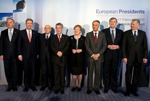 Foto dei Capi di Stato partecipanti all'incontro informale multilaterale "Uniti per l'Europa", da sinistra il Presidente della Lettonia, della Germania, dell'Italia, dell'Austria, della Finlandia, del Portogallo, della Slovenia e dell'Ungheria