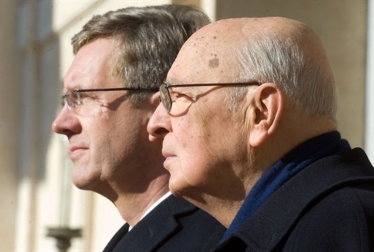 Il Presidente Giorgio Napolitano con il Presidente della Repubblica Federale di Germania, in occasione della cerimonia di congedo
