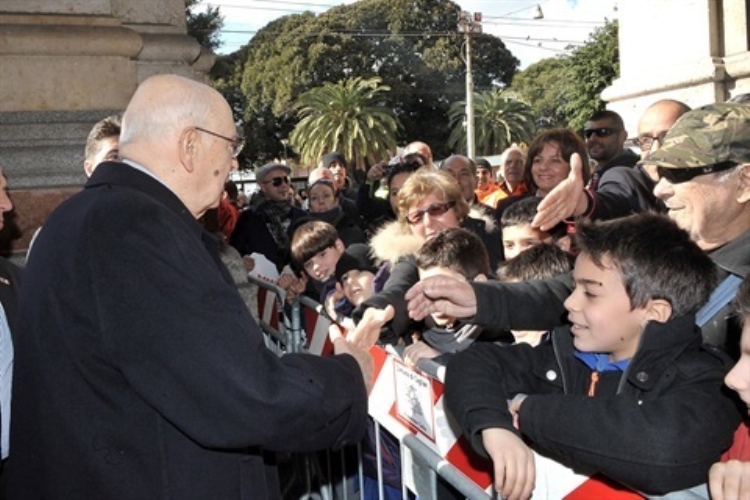 Il Presidente Giorgio Napolitano al suo arrivo nella città di Cagliari