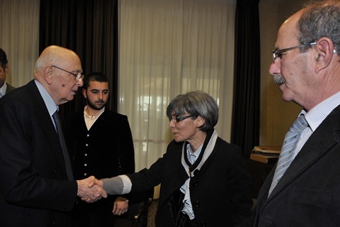 Il Presidente Giorgio Napolitano con i familiari di Rossella Urru