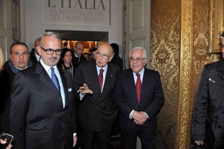 Il Presidente Giorgio Napolitano con il vice Presidente del Consiglio Superiore della Magistratura, Michele Vietti, in occasione del convegno dal titolo "La magistratura ordinaria nella storia dell'Italia Unita"
