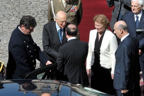 Il Presidente Giorgio Napolitano accoglie all'arrivo al Quirinale il Sig.George Abela, Presidente della Repubblica di Malta in visita di Stato in Italia