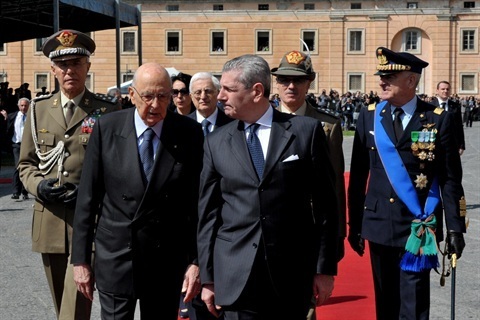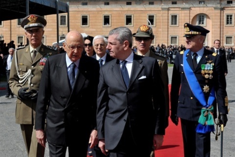 Il Presidente Giorgio Napolitano con Giampaolo Di Paola, Ministro della Difesa, in occasione della celebrazione del 89° anniversario di fondazione dell'Aeronautica Militare