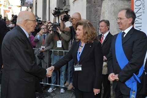 Il Presidente Giorgio Napolitano accolto dalla Dott.ssa Maria Luisa Nava, Direttore del Museo Provinciale Campano, in occasione della visita al Museo
