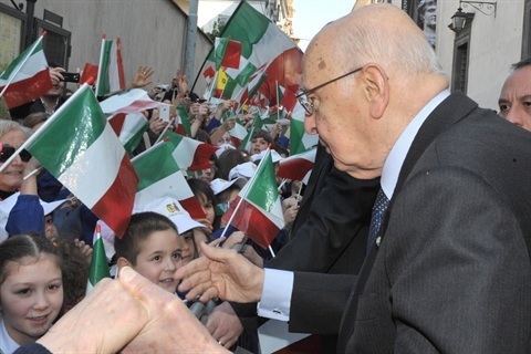 Il Presidente Giorgio Napolitano con i bambini all'uscita del Museo Provinciale Campano