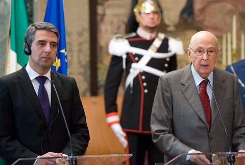 Il Presidente Giorgio Napolitano con Rosen Plevneliev, Presidente della Repubblica di Bulgaria, nel corso delle dichiarazioni alla stampa