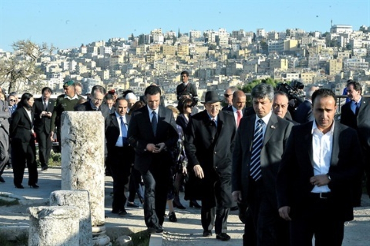 Il Presidente Giorgio Napolitano nel corso della visita alla Cittadella, in occasione della visita ufficiale nel Regno Hascemita di Giordania
