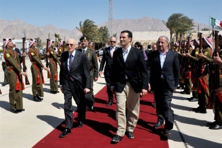 Il Presidente Giorgio Napolitano all'Aeroporto di Aqaba al termine della visita ufficiale nel Regno Hascemita di Giordania