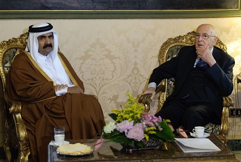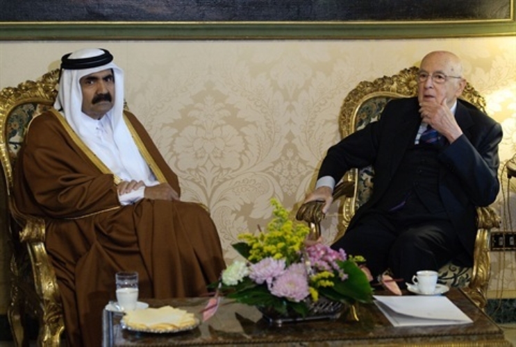 Il Presidente Giorgio Napolitano e l'Emiro dello Stato del Qatar. S.A. lo Sceicco Hamad Bin Khalifa Al-Thani, nel corso dei colloqui