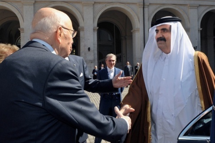 Il Presidente Giorgio Napolitano accoglie S.A. lo Sceicco Hamad Bin Khalifa Al-Thani, Emiro dello Stato del Qatar in visita di Stato in Italia