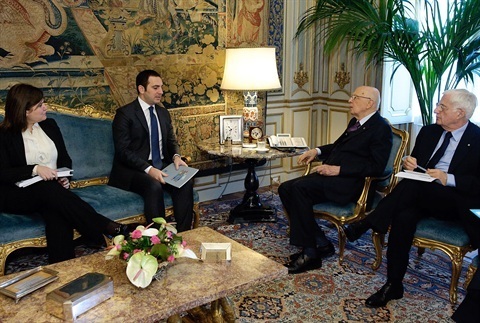 Il Presidente Giorgio Napolitano con Vincenzo Spadafora, Presidente dell'Autorità Garante per l'Infanzia e l'Adolescenza, nel corso dei colloqui