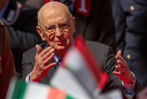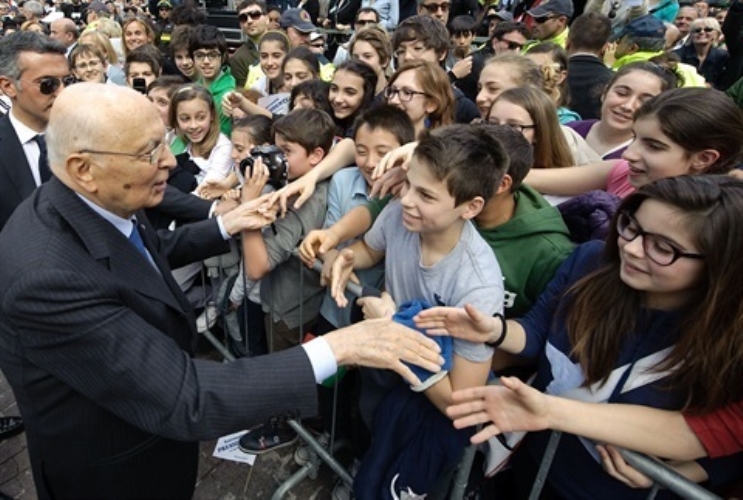 Il Presidente Giorgio Napolitano al termine della cerimonia per la celebrazione del 67° Anniversario della Liberazione