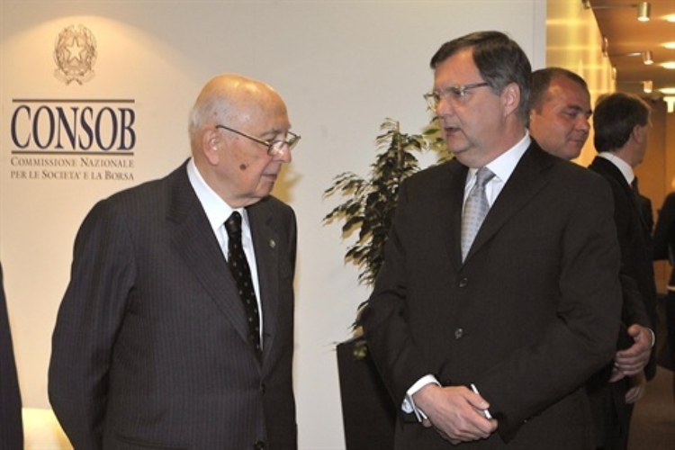 Il Presidente Giorgio Napolitano con il Presidente della Consob, Giuseppe Vegas, in occasione della presentazione della Relazione per l'anno 2011