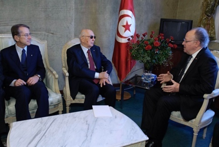Il Presidente Giorgio Napolitano con il Presidente dell'Assemblea Nazionale Costituente Mustapha Ben Jaafar, a sinistra il Ministro degli Esteri Giulio Terzi
