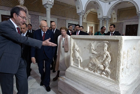 Il Presidente Giorgio Napolitano nel corso della visita al Museo Nazionale del Bardo