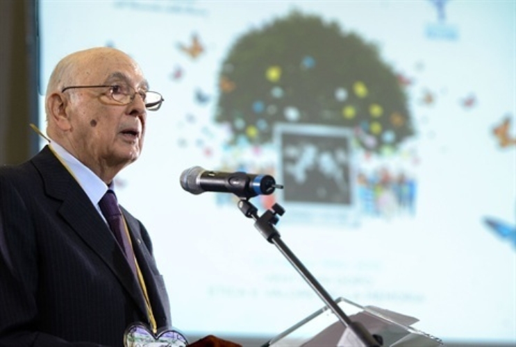 Il Presidente Giorgio Napolitano nel corso del suo intervento nell'aula bunker di Palermo, in occasione della cerimonia commemorativa del Giudice Giovanni Falcone, nel ventennale dell'assasinio
