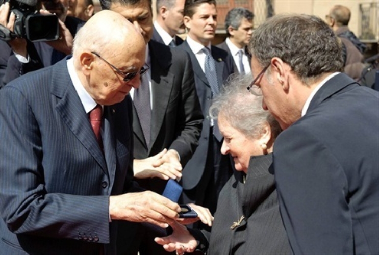 Il Presidente della Repubblica Giorgio Napolitano consegna una medaglia d'oro al Merito Civile alla memoria di Placido Rizzotto alla sorella Signora Giuseppa Rizzotto