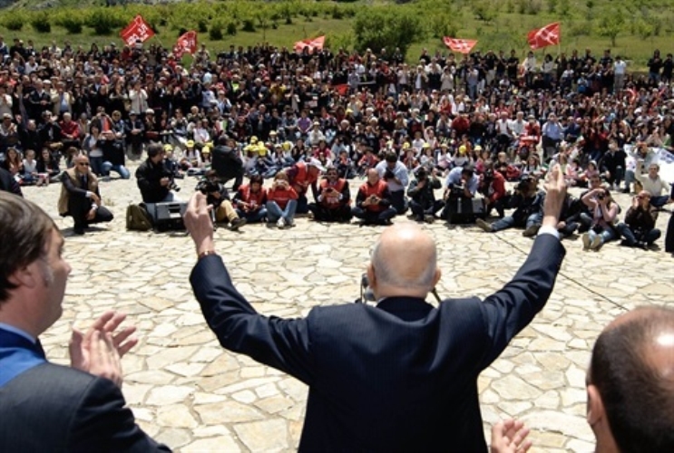 Il Presidente della Repubblica Giorgio Napolitano durante il suo intervento a Portella della Ginestra