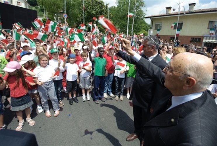 Il Presidente Giorgio Napolitano risponde al saluto dei ragazzi