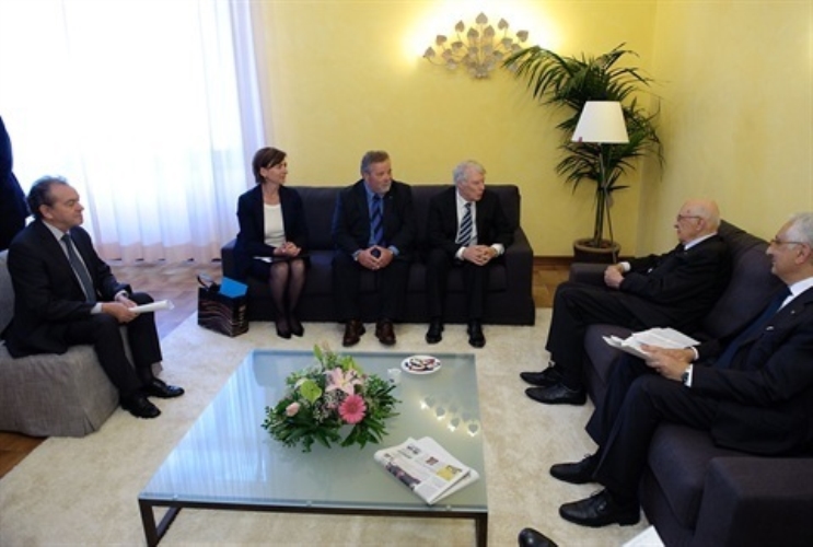 Il Presidente Giorgio Napolitano nel corso dell'incontro con alcuni esponenti delle Associazioni slovene
