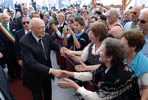 Il Presidente Giorgio Napolitano salutato al suo arrivo in città