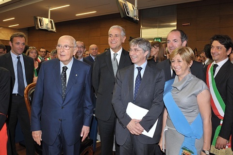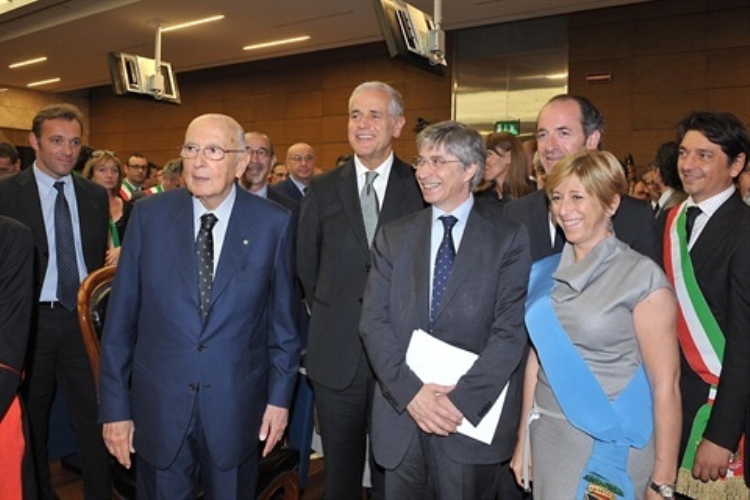 Il Presidente Giorgio Napolitano con i rappresentanti delle istituzioni dell'Emilia Romagna in occasione della visita nelle zone terremotate