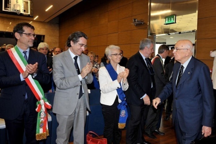 Il Presidente Giorgio Napolitano nel corso dell'incontro con le istituzioni in occasione della visita nelle zone terremotate dell'Emilia Romagna