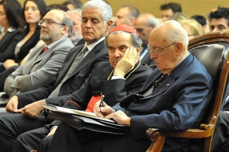 Il Presidente Giorgio Napolitano all'incontro cone le istituzioni in occasione della visita nelle zone terremotate dell'Emilia Romagna