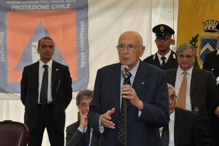 Il Presidente durante il suo intervento in occasione della visita nelle zone terremotate dell'Emilia Romagna