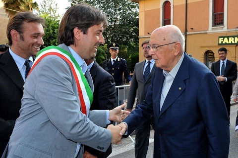 Il Presidente Giorgio Napolitano con il Sindaco di Sant'Agostino, Fabrizio Toselli