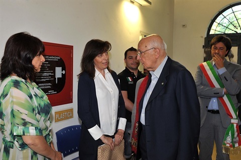 Il Presidente Giorgio Napolitano con i familiari degli operai deceduti in seguito al crollo dei capannoni industriali