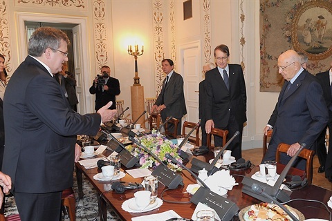 Il Presidente Giorgio Napolitano durante i colloqui allargati alle delegazioni ufficiali