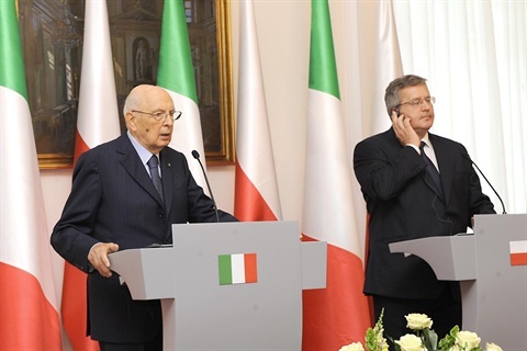 Il Presidente Giorgio Napolitano durante le dichiarazioni alla stampa al termine del colloquio con il Presidente della Repubblica di Polonia Bronislaw Komorowski