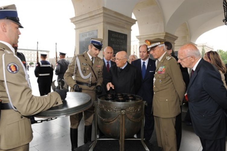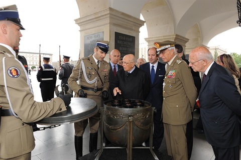Il Presidente Giorgio Napolitano al Sacello del Milite Ignoto in occasione della visita di Stato nella Repubblica di Polonia