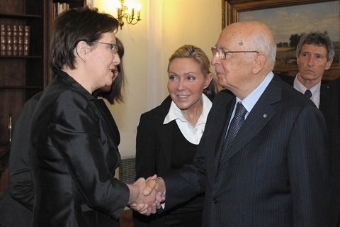 Il Presidente Giorgio Napolitano con il Presidente del Sejm Ewa Kopacz al Palazzo del Parlamento in occasione della visita di Stato nella Repubblica di Polonia