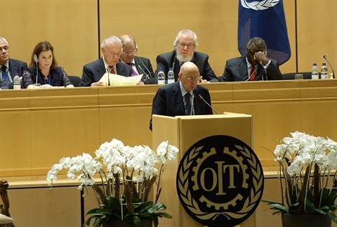 Il Presidente Giorgio Napolitano nel corso dell'intervento alla 101^ Conferenza Internazionale del Lavoro