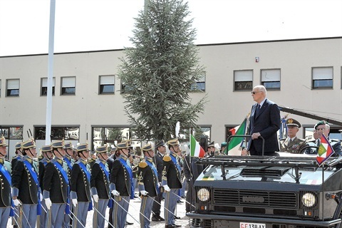 Il Presidente Giorgio Napolitano durante la rassegna dei Reparti schierati con Bandiera e banda per il 238° Anniversario di fondazione del Corpo della Guardia di Finanza