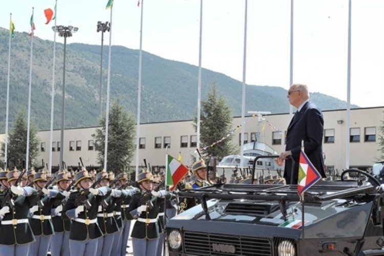 Il Presidente Giorgio Napolitano durante la rassegna dei Reparti schierati con Bandiera e banda in occasione del 238° Anniversario di fondazione del Corpo della Guardia di Finanza